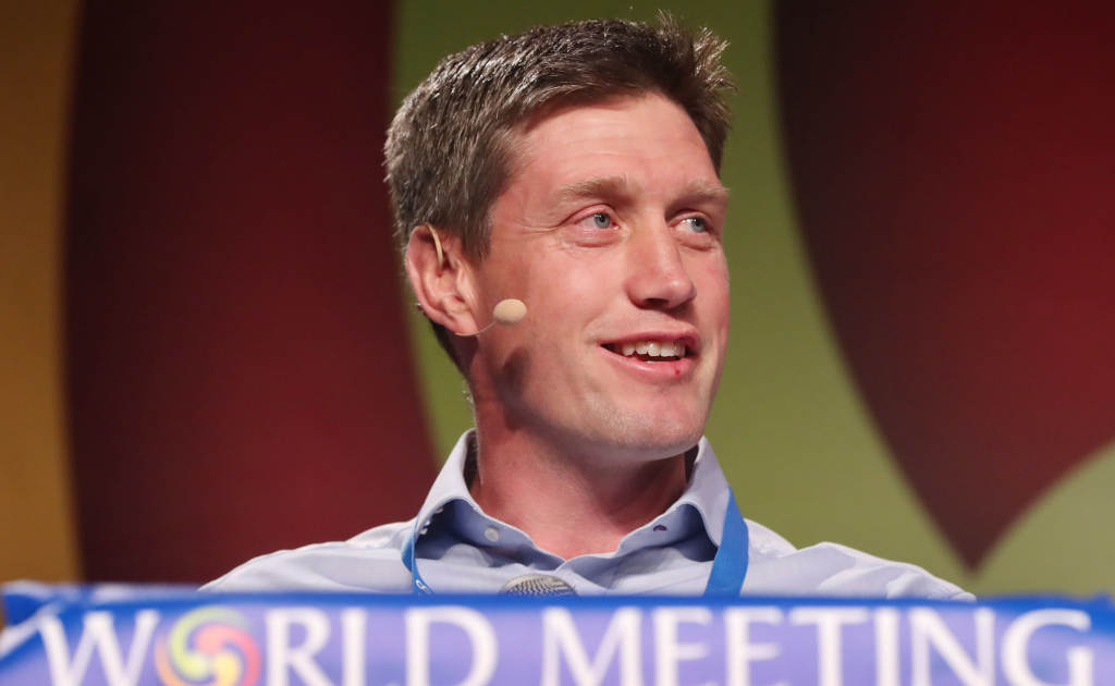 Ronan O'Gara speaking at the world meeting of families in Dublin.