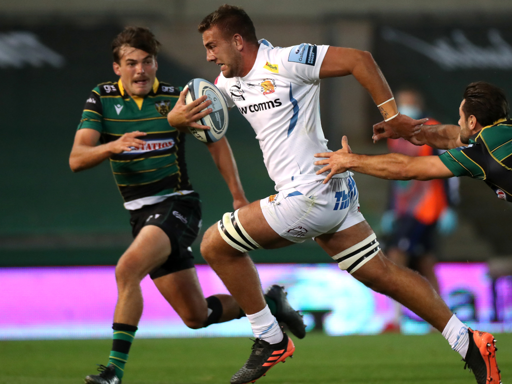 It took a 72nd-minute try from Tom O’Flaherty to see off Northampton in an entertaining match behind closed doors as Exeter claimed a sixth successive win.