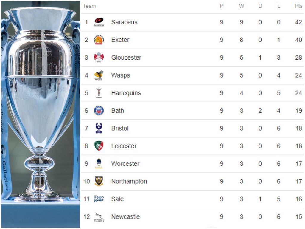 This year, it’s the opposite. We have two summiteers, a close race for third and a huge, seven-way scrap to not be the team staring into the abyss. A freak set of results the weekend before Christmas could send Bath, currently in sixth, to the bottom. Leicester are also only a defeat and some other teams’ wins away from bottom spot.