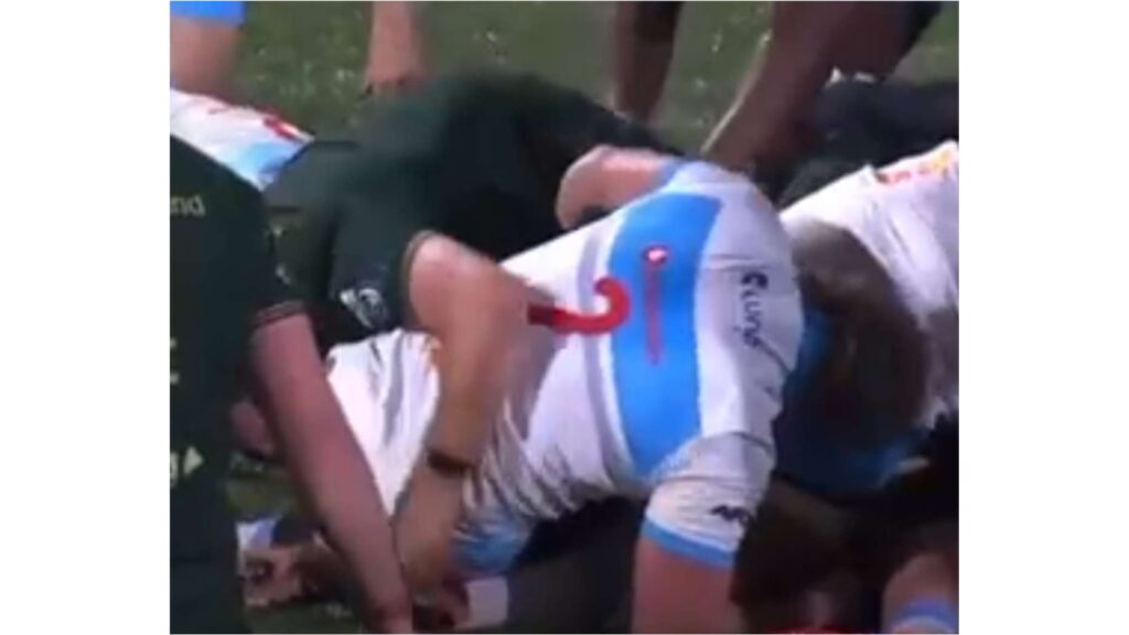 “The movement is not consistent with any legitimate rucking, grasp or binding action.