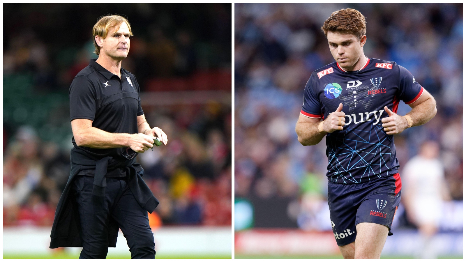 Split with All Blacks head coach Scott Robertson and Melbourne Rebels star Andrew Kellaway.