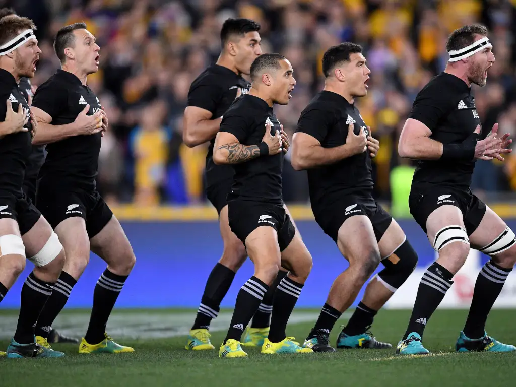 The All Blacks perform the Haka ahead of the first Bledisloe Cup match between Australia and New Zealand at ANZ Stadium in Sydney, Saturday, August 18, 2018. (AAP Image/Dan Himbrechts)