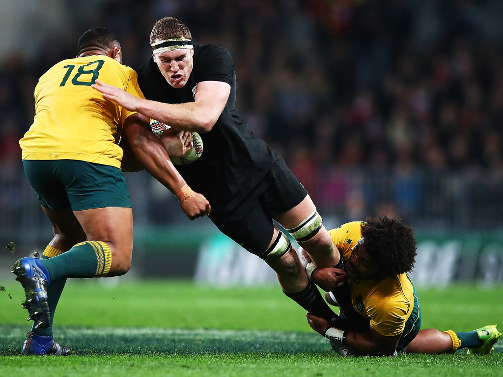 during The Rugby Championship Bledisloe Cup match between the New Zealand All Blacks and the Australia Wallabies at Forsyth Barr Stadium on August 26, 2017 in Dunedin, New Zealand.
