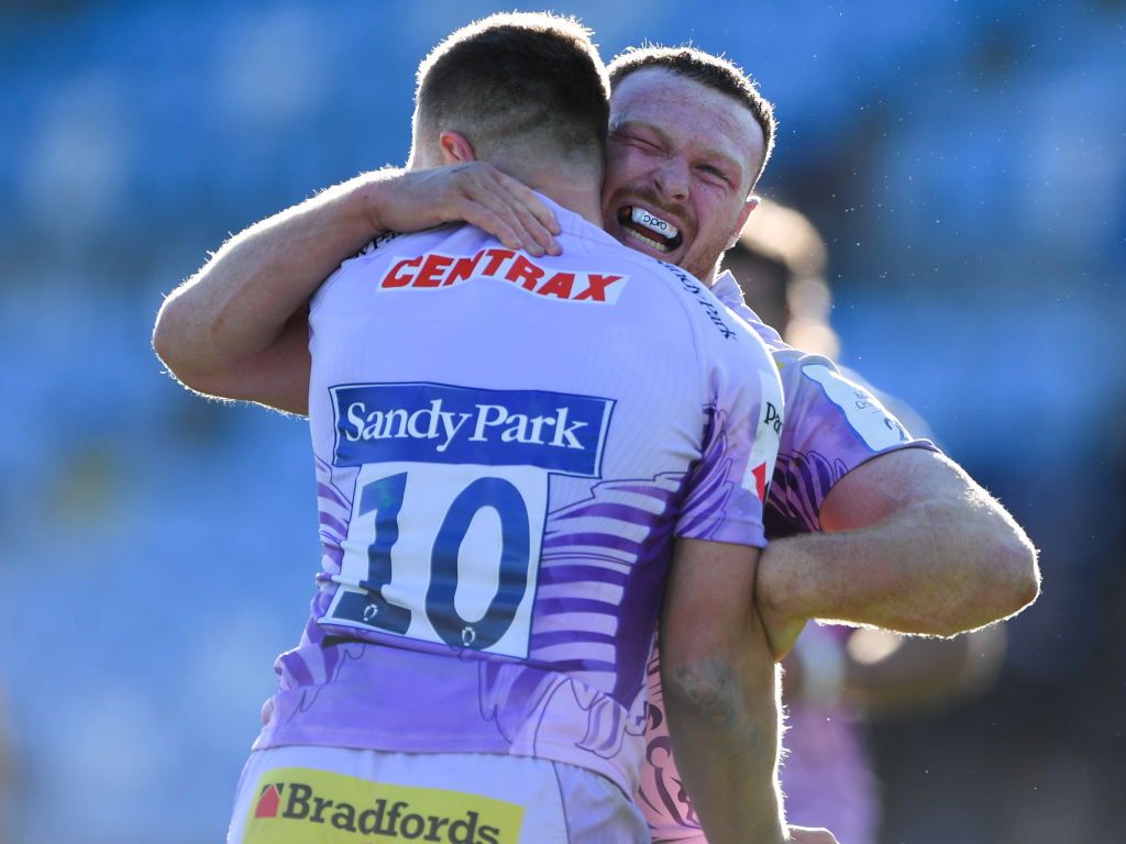 Exeter: 15 Facundo Cordero, 14 Tom O’Flaherty, 13 Ian Whitten, 12 Ollie Devoto, 11 Olly Woodburn, 10 Joe Simmonds, 9 Jack Maunder, 8 Sam Simmonds, 7 Jannes Kirsten, 6 Dave Ewers, 5 Don Armand, 4 Will Witty, 3 Harry Williams, 2 Jack Yeandle (c), 1 Alec Hepburn