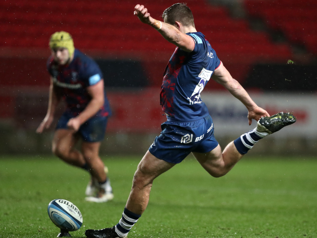 Bristol Bears' Sam Bedlow scores his side's winning penalty during the Gallagher Premiership match at Ashton Gate, Bristol.