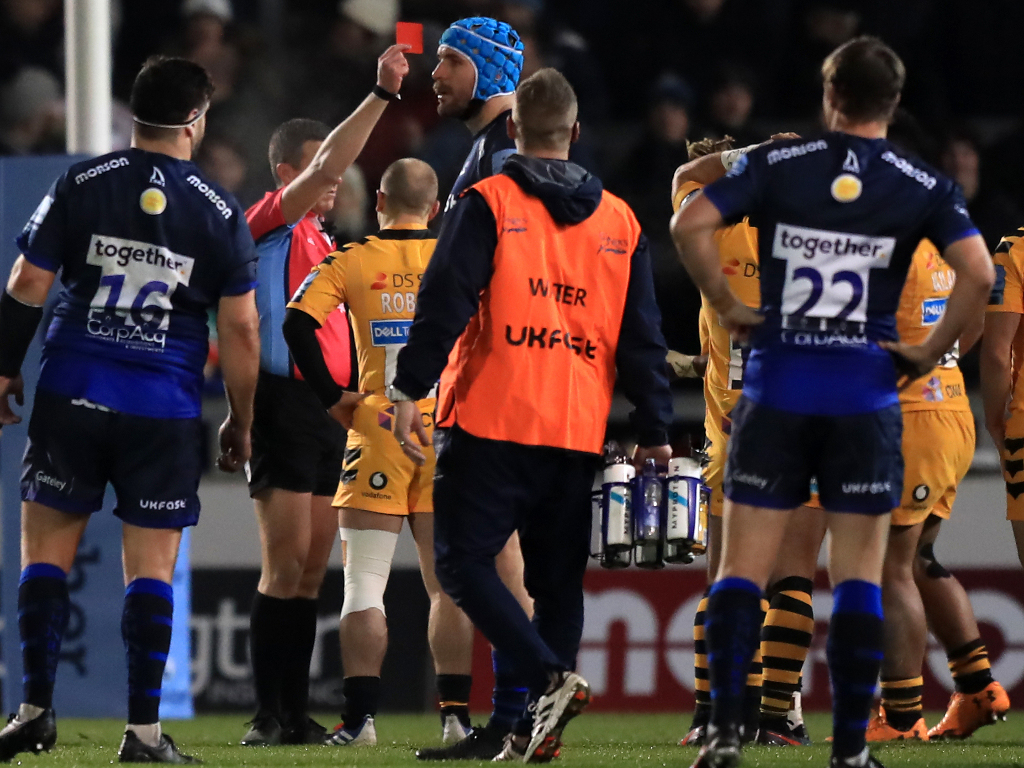 He was shown a red card by referee Tom Foley in the 79th minute of the match between Sale Sharks and Wasps last Friday.